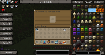 The ME Wireless Access Terminal is a tool added by Applied Energistics. It is very simple to use. A network can have any number of ME Wireless Access Point with any number of Wireless Boosters in each one allowing you to optimize power usage and range by altering your setup.