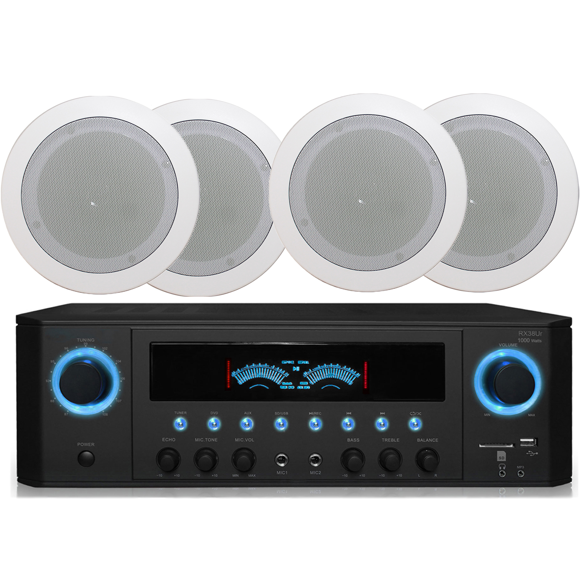 Showing items 1-13 of 13. Operation is subject to the following two conditions. Operation is subject to the following two conditions. 5 DIFFERENT INPUTS- 5 different ways to play your favorite music including bluetooth FM tuner SD card USB input and ipadiphone compatible. It also features full range stereo sound reproduction and treble bass echo volume controls for impressive bass response. Technical Pro 4000 Watts Professional Bluetooth Home Audio Receiver w Built-in DVD Player Dual 14 Mic and USB SD Inputs Volume and Echo Controls Remote Included for Karaoke Parties and More. This receiver produces up to 150W of RMS power and features a stereo RCA and an 18 aux input as well as a USB and SD card reader allowing you to play music from a variety of.